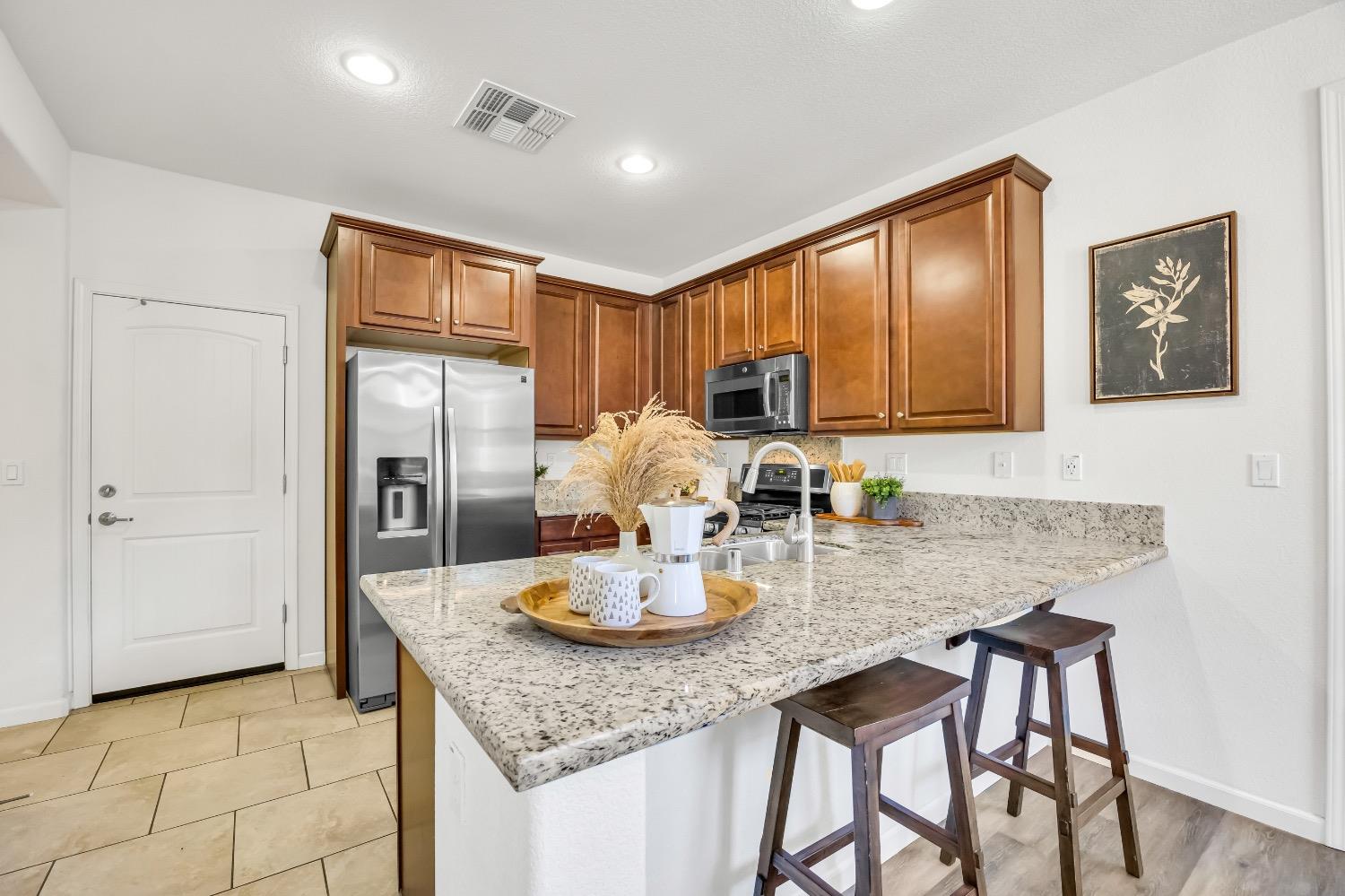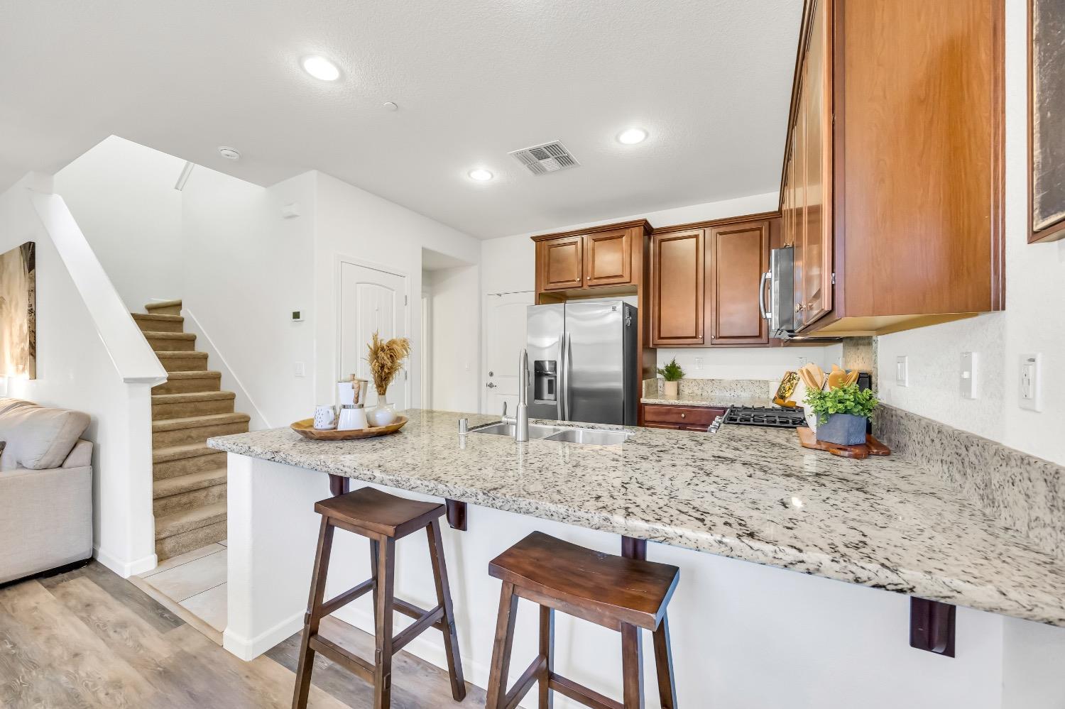 Discover this inviting home nestled in the heart of highly desirable West Roseville. Built in 2015, this property seamlessly blends modern upgrades, functional design, and an unbeatable location. It's an excellent choice for first-time homebuyers or those looking to expand their real estate portfolio. Situated within the top-rated Roseville Unified School District (buyer to verify), this home is just minutes from local favorites such as Kitchen 747, MoJoe's Cafe, and Masa Masa. It's also conveniently located near the new Safeway and Costco developments. The front courtyard provides a perfect space to enjoy your morning coffee or unwind after a long day. The home features a thoughtful layout with a half bathroom downstairs for guests, while the remaining two bathrooms and three spacious bedrooms are located upstairs. Included are stainless steel appliances and a stackable washer and dryer for added convenience. This home is further enhanced by owned SunPower solar panels, offering energy efficiency and significant long-term savings.