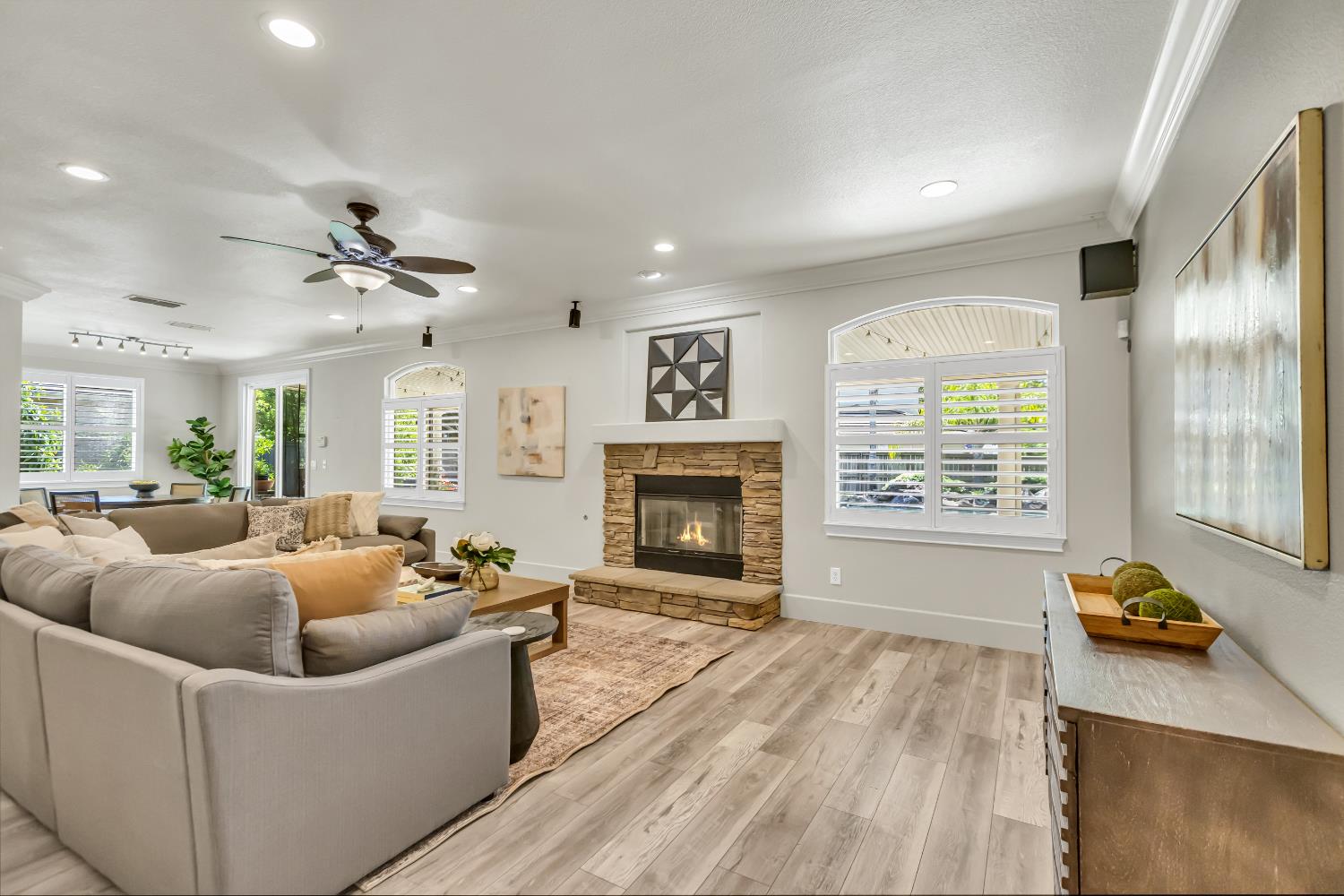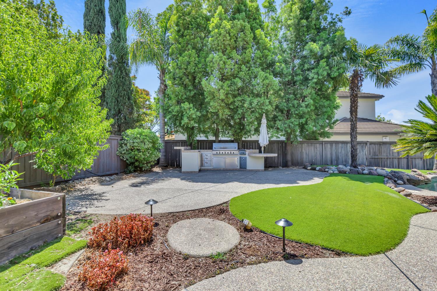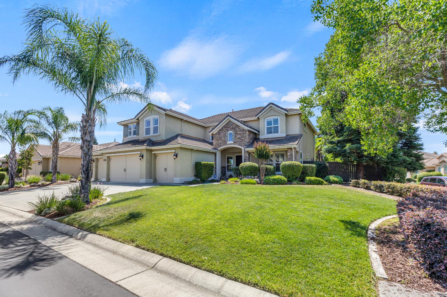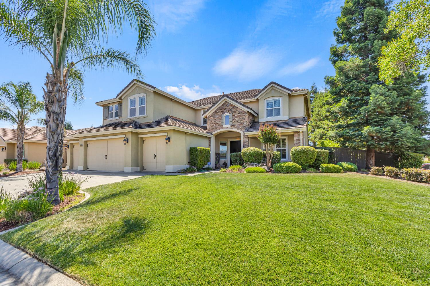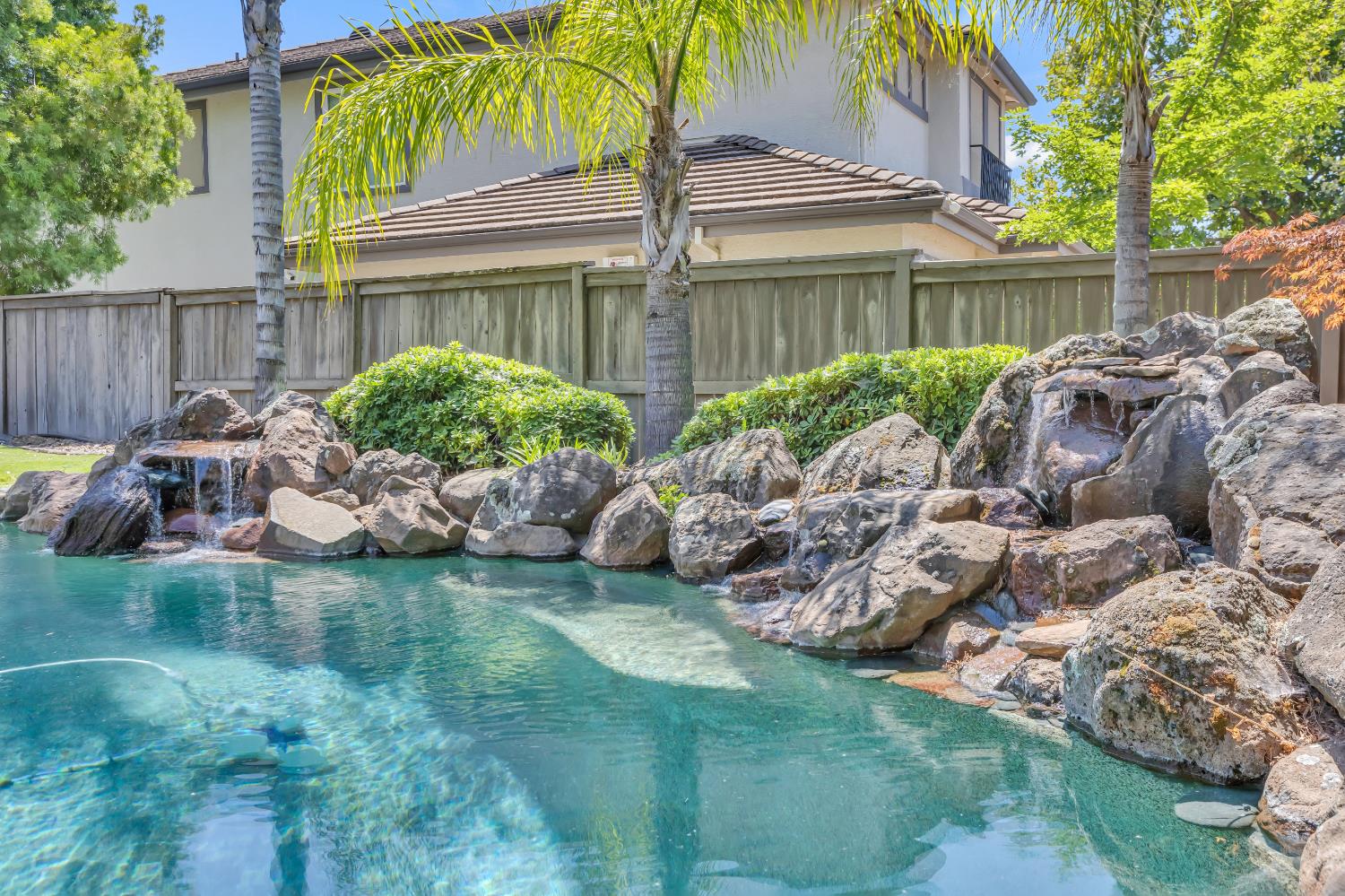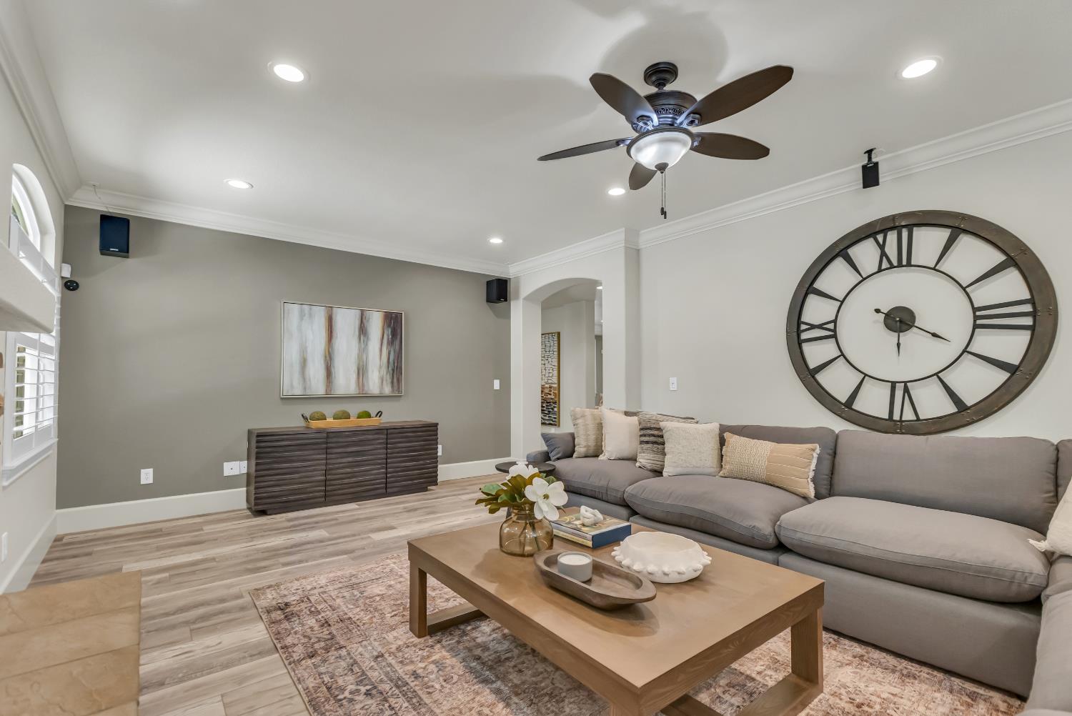 Welcome to 1456 Oak Hill Way an expansive and beautifully updated home in the gated Stoneridge community of East Roseville. Situated on a premium corner lot, this 6-bedroom, 4-bathroom home offers over 4,000 sq ft of thoughtfully designed living space, including a convenient downstairs bed and newly remodeled bath. The main level features soaring ceilings, brand-new LVP flooring, and a chef's dream kitchen with quartz countertops, a large island, walk-in pantry, and abundant cabinetry with deep pull-out drawers. Upstairs includes a massive media room perfect for movie nights or entertaining. Step outside to your private resort-style retreat with a walk-in pool, tranquil waterfalls, spa, and mature palm trees. The fully equipped DCS outdoor kitchen features a built-in grill, side burner, and storage drawers (fridge not included), alongside a large covered patio ideal for outdoor dining. Enjoy a variety of fruit trees including Asian pear, mandarin orange, avocado, nectarine, Meyer lemon, lemon, and lime. Additional highlights include a cozy fireplace, whole house fan, and rare 4-car garage. Located near top-rated schools, parks, and trails this home blends luxury, comfort, and convenience in one of Roseville's most desirable neighborhoods.