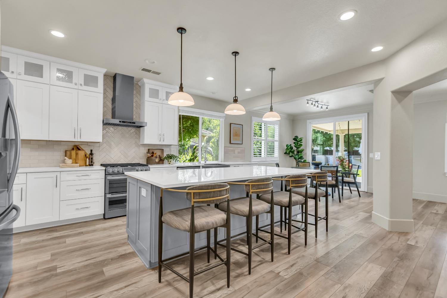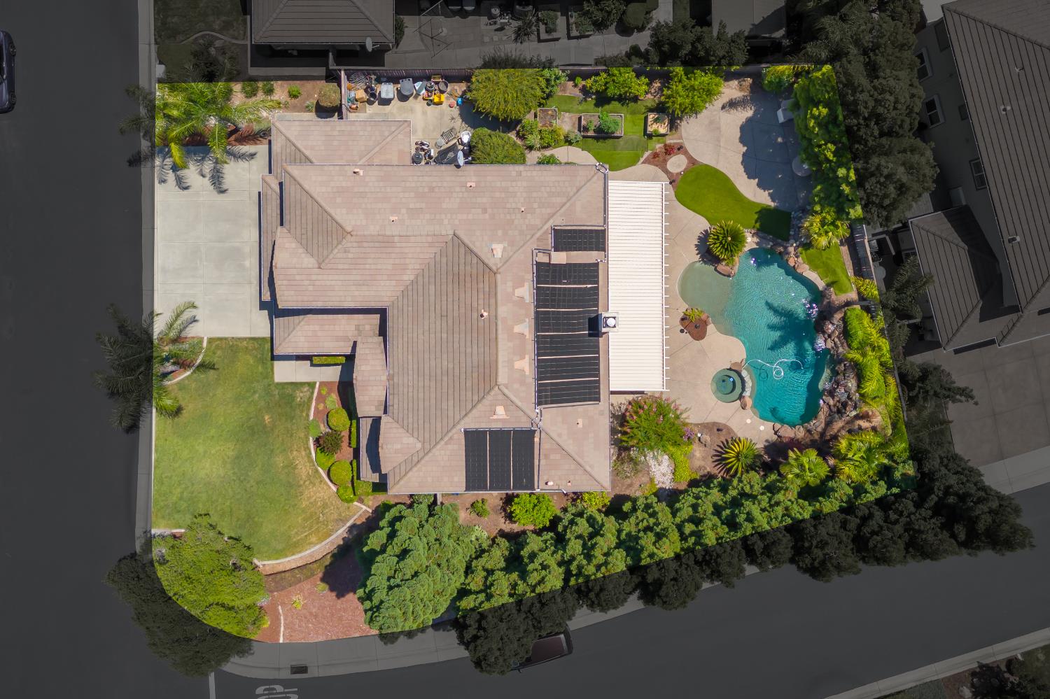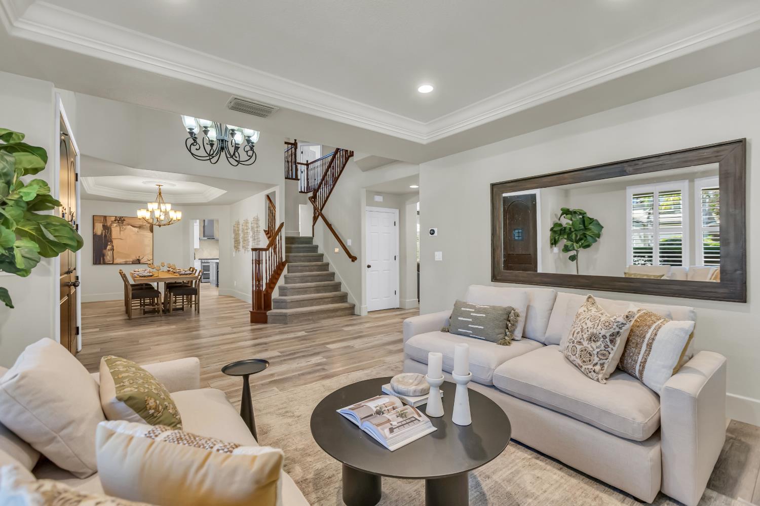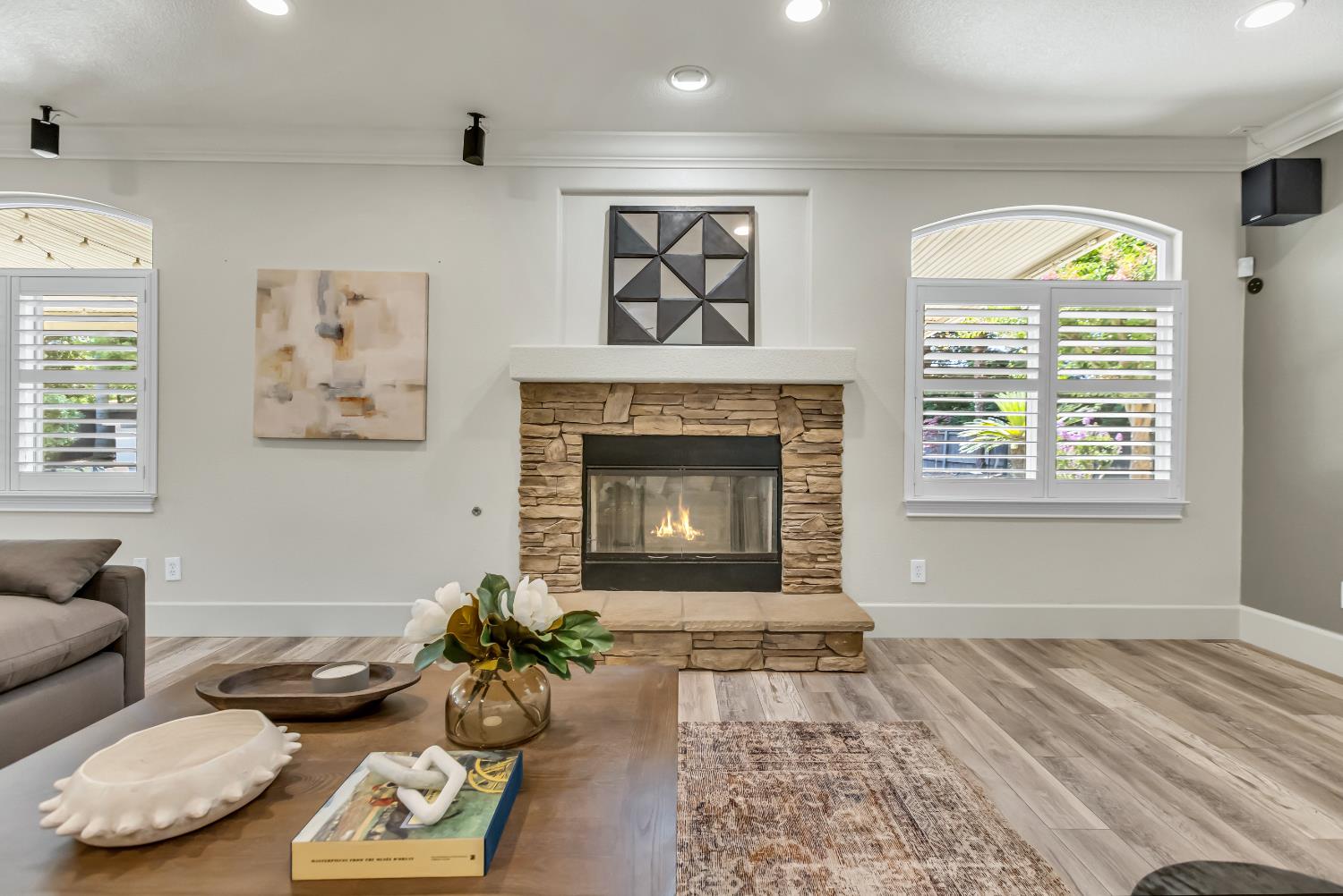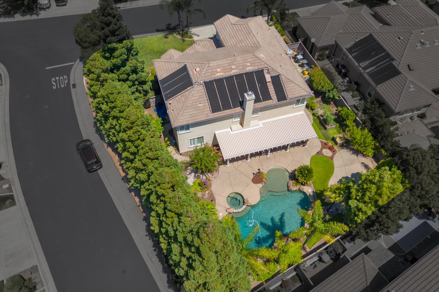 Welcome to 1456 Oak Hill Way an expansive and beautifully updated home in the gated Stoneridge community of East Roseville. Situated on a premium corner lot, this 6-bedroom, 4-bathroom home offers over 4,000 sq ft of thoughtfully designed living space, including a convenient downstairs bed and newly remodeled bath. The main level features soaring ceilings, brand-new LVP flooring, and a chef's dream kitchen with quartz countertops, a large island, walk-in pantry, and abundant cabinetry with deep pull-out drawers. Upstairs includes a massive media room perfect for movie nights or entertaining. Step outside to your private resort-style retreat with a walk-in pool, tranquil waterfalls, spa, and mature palm trees. The fully equipped DCS outdoor kitchen features a built-in grill, side burner, and storage drawers (fridge not included), alongside a large covered patio ideal for outdoor dining. Enjoy a variety of fruit trees including Asian pear, mandarin orange, avocado, nectarine, Meyer lemon, lemon, and lime. Additional highlights include a cozy fireplace, whole house fan, and rare 4-car garage. Located near top-rated schools, parks, and trails this home blends luxury, comfort, and convenience in one of Roseville's most desirable neighborhoods.