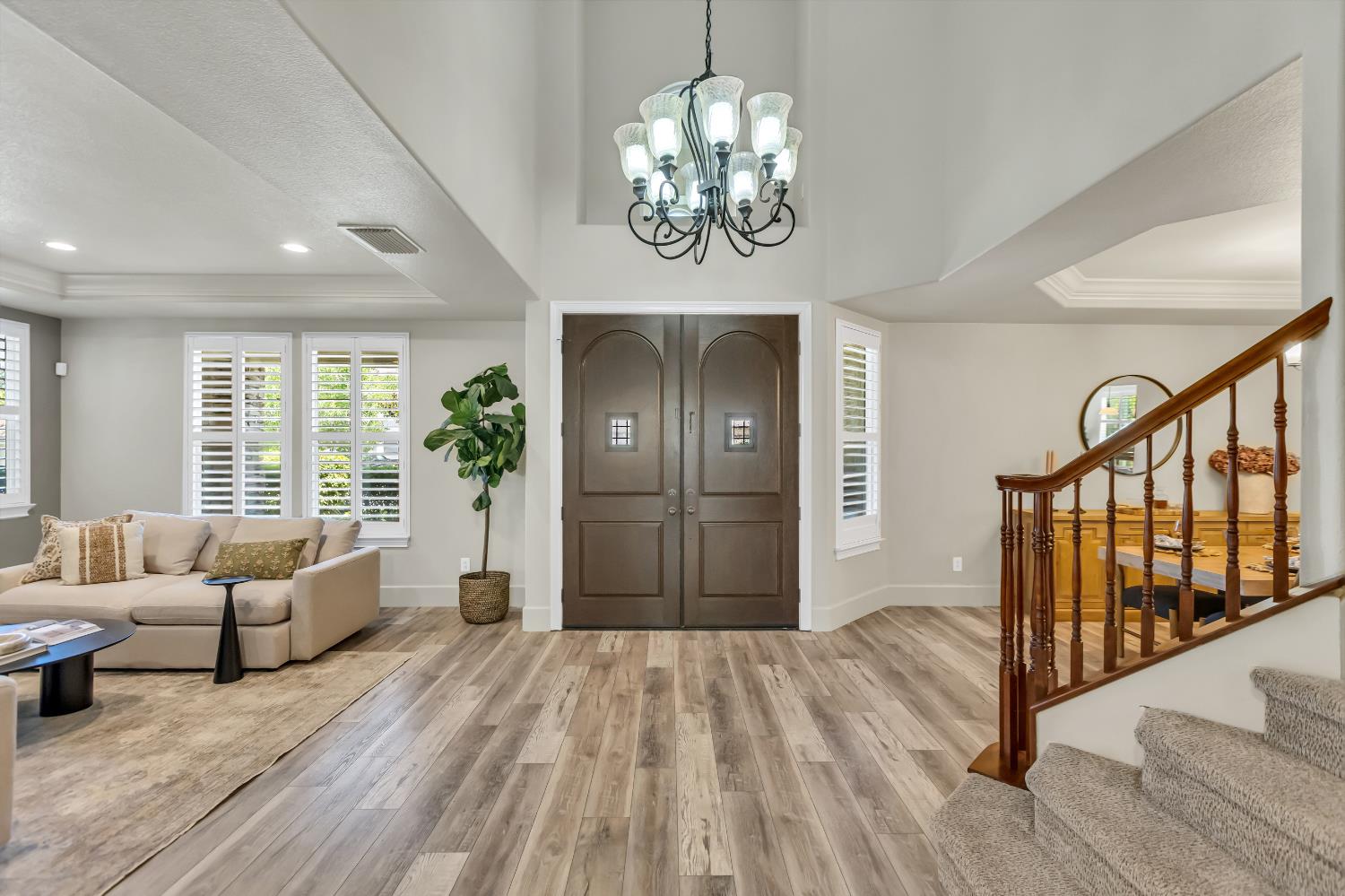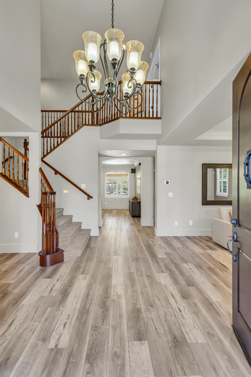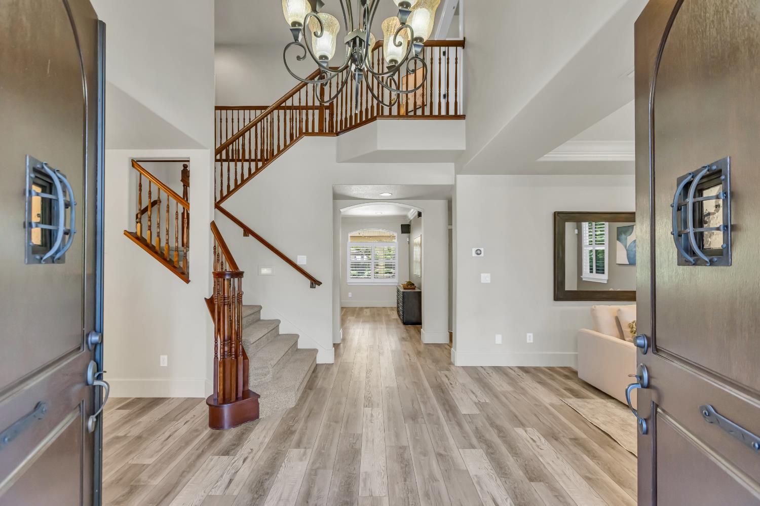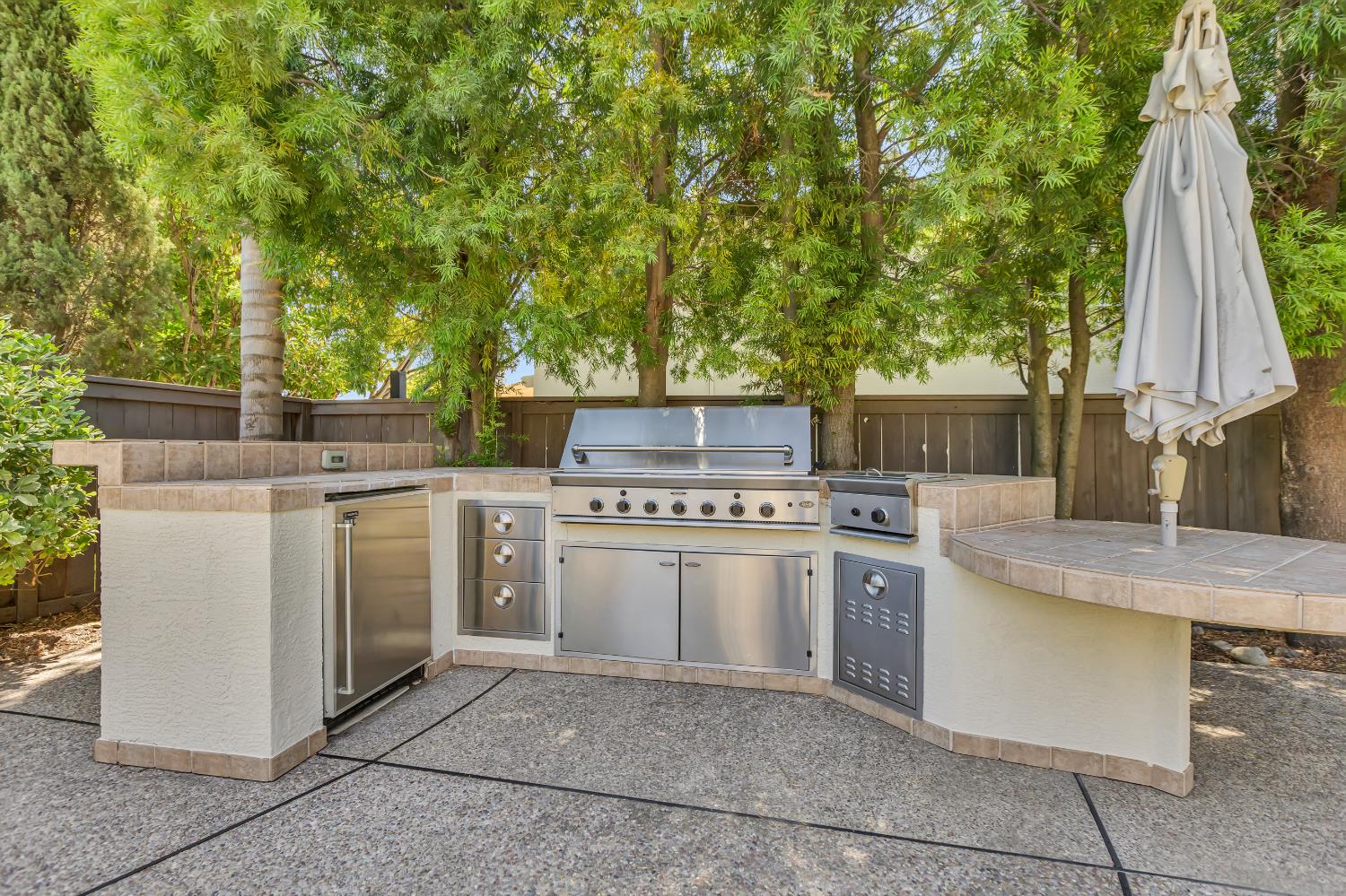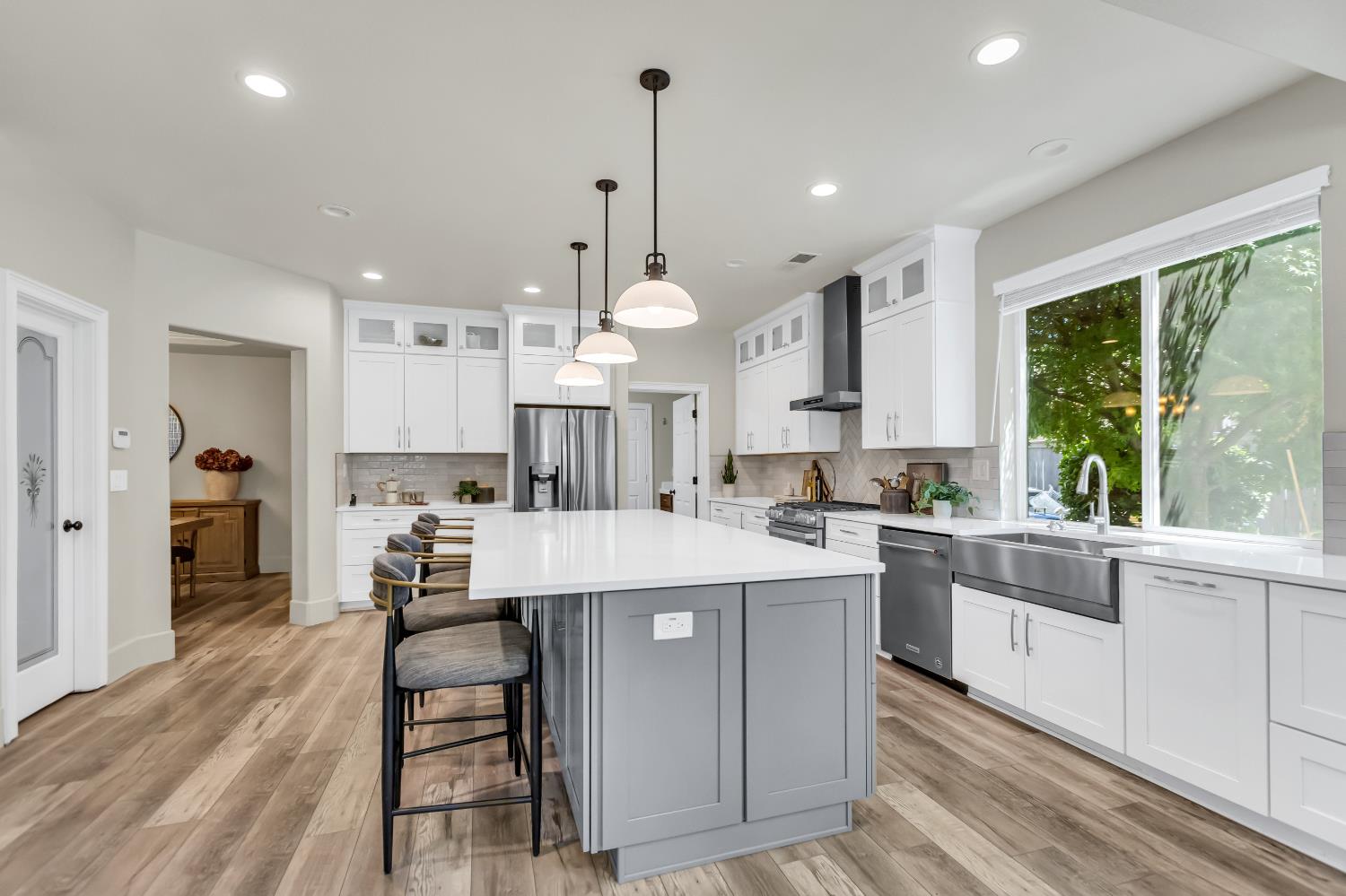 Welcome to 1456 Oak Hill Way an expansive and beautifully updated home in the gated Stoneridge community of East Roseville. Situated on a premium corner lot, this 6-bedroom, 4-bathroom home offers over 4,000 sq ft of thoughtfully designed living space, including a convenient downstairs bed and newly remodeled bath. The main level features soaring ceilings, brand-new LVP flooring, and a chef's dream kitchen with quartz countertops, a large island, walk-in pantry, and abundant cabinetry with deep pull-out drawers. Upstairs includes a massive media room perfect for movie nights or entertaining. Step outside to your private resort-style retreat with a walk-in pool, tranquil waterfalls, spa, and mature palm trees. The fully equipped DCS outdoor kitchen features a built-in grill, side burner, and storage drawers (fridge not included), alongside a large covered patio ideal for outdoor dining. Enjoy a variety of fruit trees including Asian pear, mandarin orange, avocado, nectarine, Meyer lemon, lemon, and lime. Additional highlights include a cozy fireplace, whole house fan, and rare 4-car garage. Located near top-rated schools, parks, and trails this home blends luxury, comfort, and convenience in one of Roseville's most desirable neighborhoods.