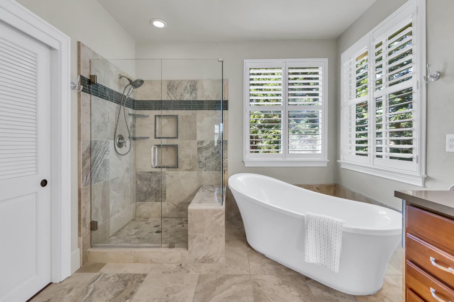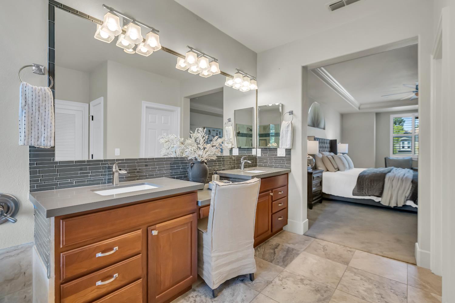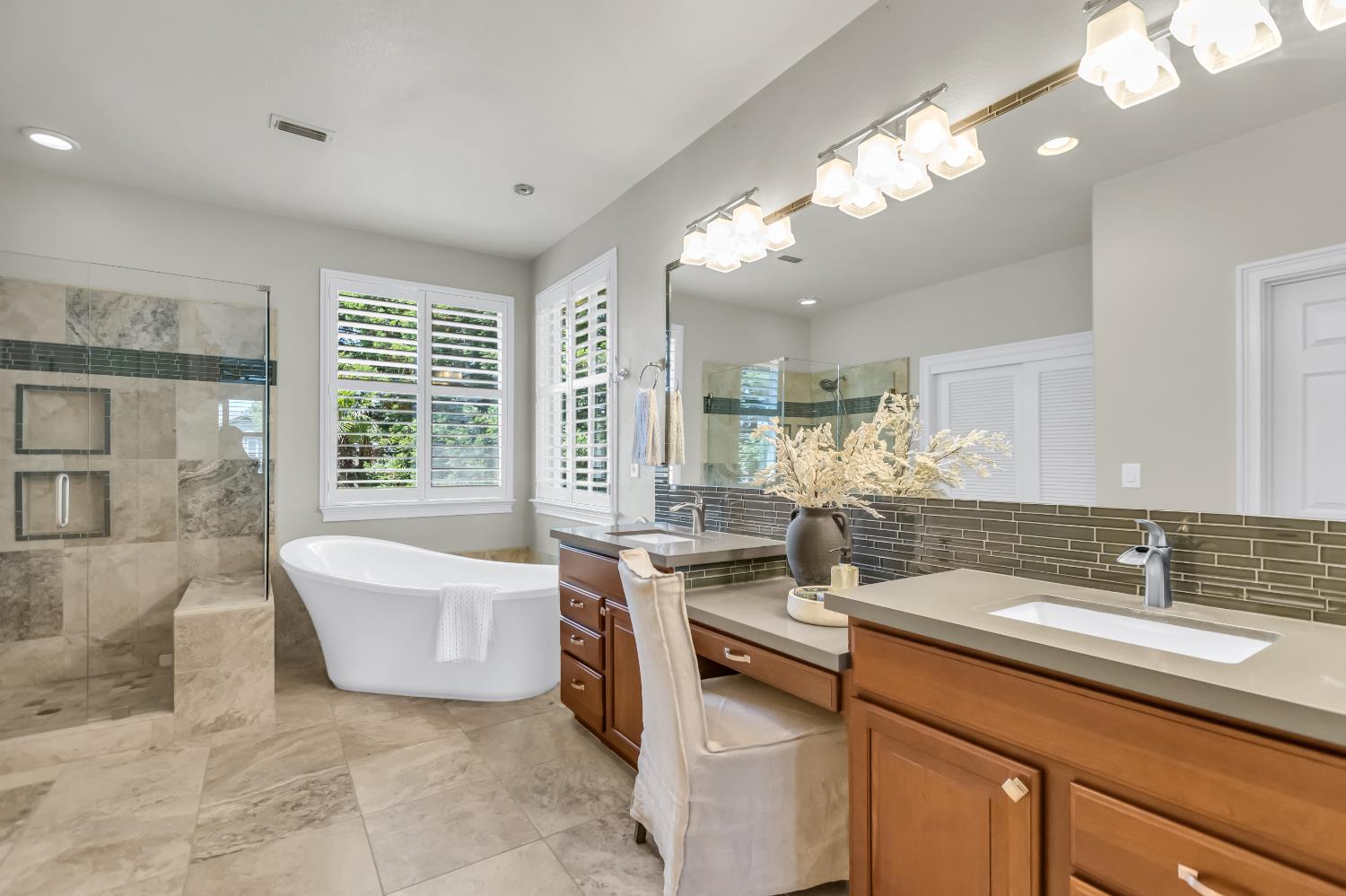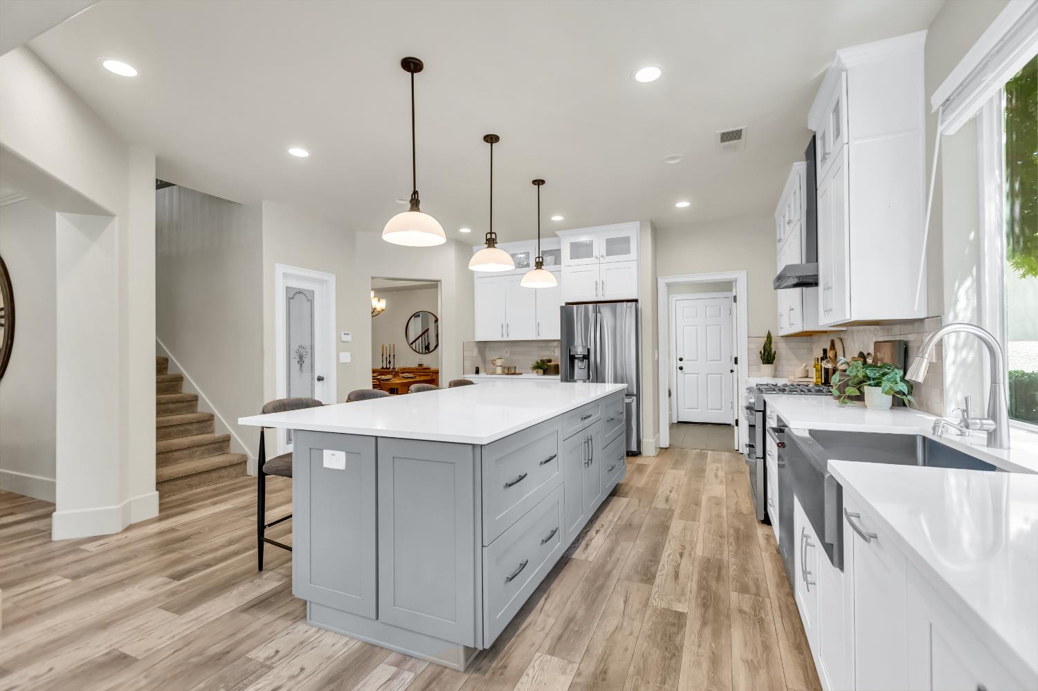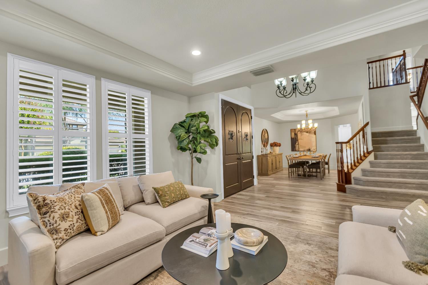Welcome to 1456 Oak Hill Way an expansive and beautifully updated home in the gated Stoneridge community of East Roseville. Situated on a premium corner lot, this 6-bedroom, 4-bathroom home offers over 4,000 sq ft of thoughtfully designed living space, including a convenient downstairs bed and newly remodeled bath. The main level features soaring ceilings, brand-new LVP flooring, and a chef's dream kitchen with quartz countertops, a large island, walk-in pantry, and abundant cabinetry with deep pull-out drawers. Upstairs includes a massive media room perfect for movie nights or entertaining. Step outside to your private resort-style retreat with a walk-in pool, tranquil waterfalls, spa, and mature palm trees. The fully equipped DCS outdoor kitchen features a built-in grill, side burner, and storage drawers (fridge not included), alongside a large covered patio ideal for outdoor dining. Enjoy a variety of fruit trees including Asian pear, mandarin orange, avocado, nectarine, Meyer lemon, lemon, and lime. Additional highlights include a cozy fireplace, whole house fan, and rare 4-car garage. Located near top-rated schools, parks, and trails this home blends luxury, comfort, and convenience in one of Roseville's most desirable neighborhoods.