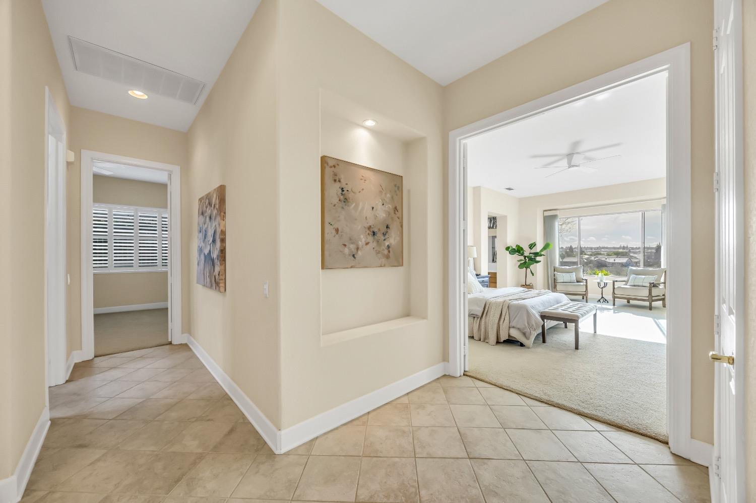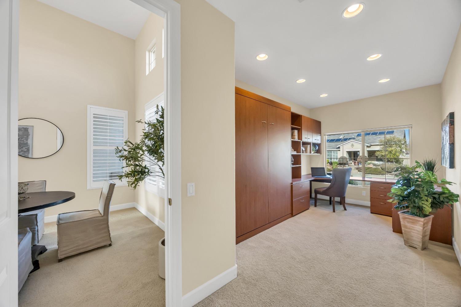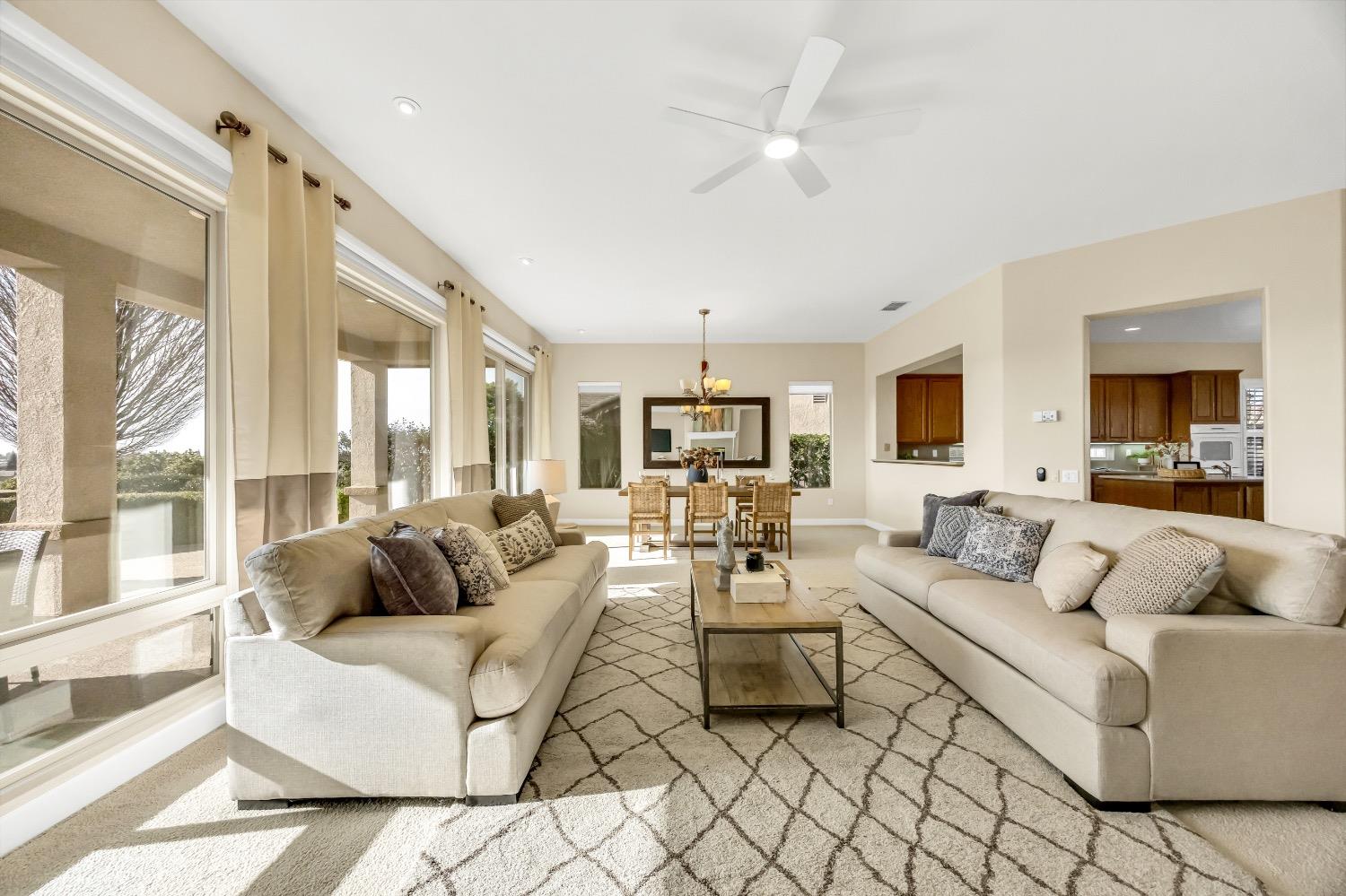 Nestled atop a serene hilltop in the highly sought-after active adult community of Sun City Lincoln Hills, this stunning Tiburon floor plan offers a rare combination of breathtaking valley views, elegant design, and resort-style living. Set in a peaceful enclave of homes, this 2-bedroom, 2.5-bathroom residence provides an idyllic retreat for those seeking both comfort and style. Each bedroom has its own full bathroom with a half bath in the hallway for your guests. This particular model also features a den with a passthrough to a flex room, offering versatility for extra guest quarters, a hobby room, or an office. Additionally, this home does not have Kitec plumbing. Whether you're playing pickleball, enjoying the award-winning golf courses, or simply lounging by the pool, come see why Sun City Lincoln Hills is the premier destination for those seeking luxury living.