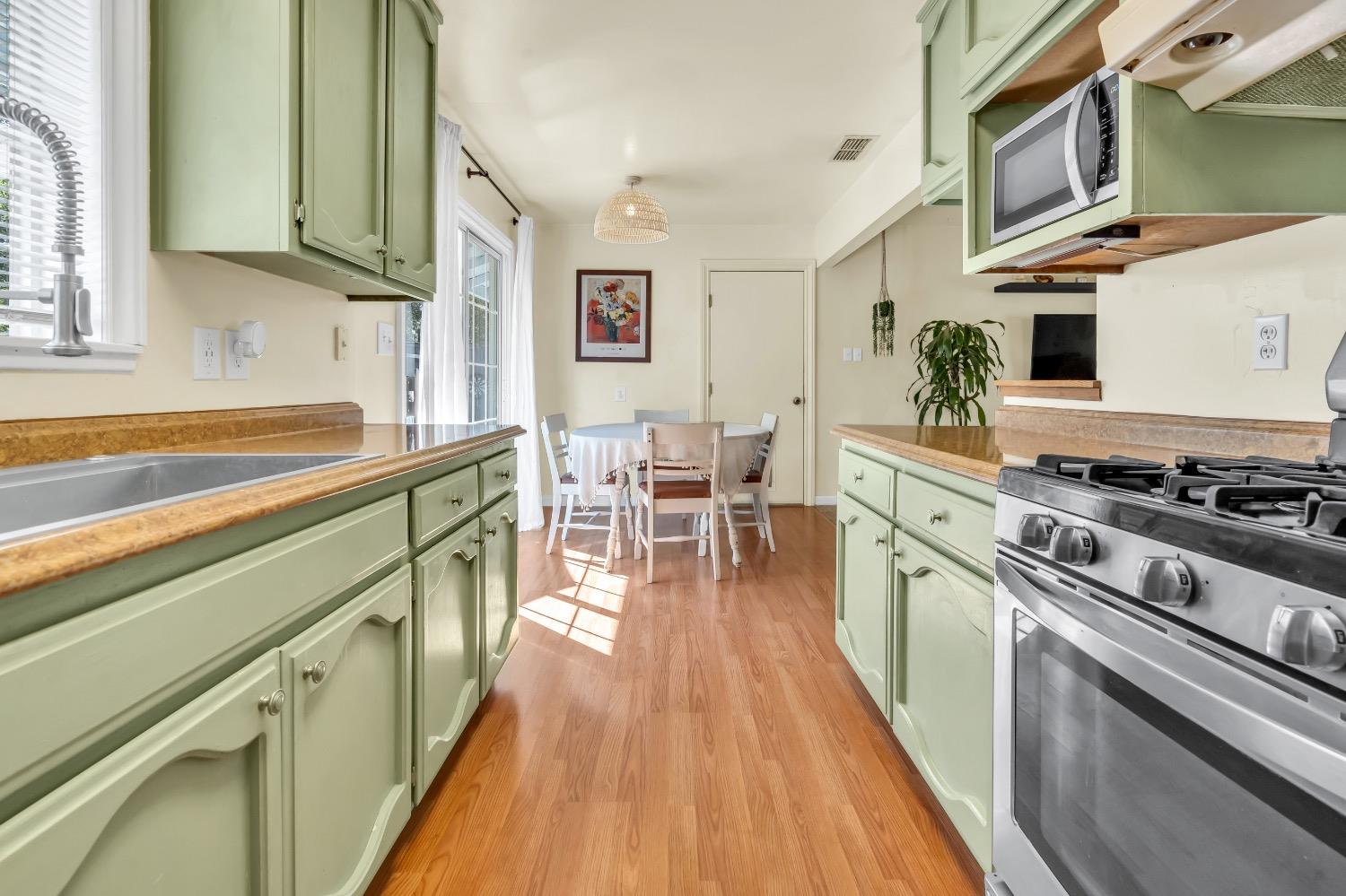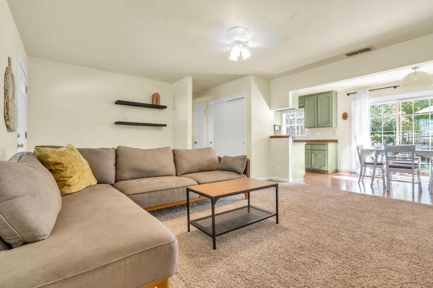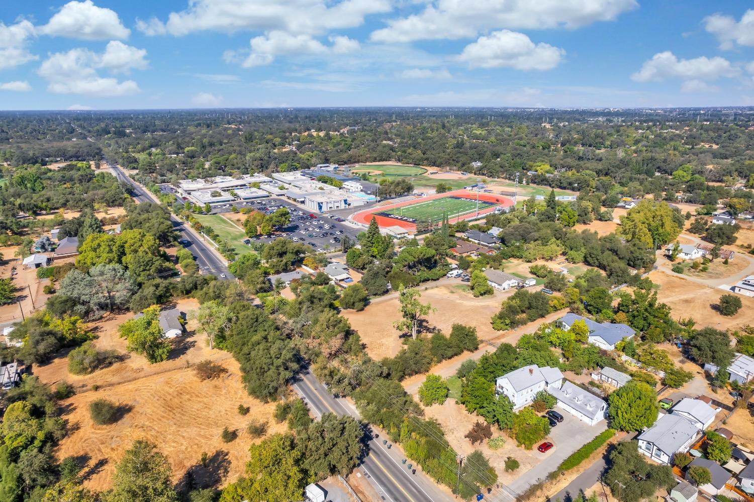Welcome to 7404 Granite Avenue in sunny Orangevale, CA! This single-story home is situated on a HUGE 0.3-acre corner lot, offering tons of potential for your garden, RV parking, or to raise chickens. Do you have kids entering high school soon? Casa Roble High School is right across the street! The front porch spans the width of the house, allowing you to sit outside in the mornings to drink your coffee. Step inside to find a bright and airy living space with a breakfast nook right next to it. All 3 bedrooms are conveniently tucked away at the back of the house. The roof is new within the last 5 years. Best of all, there are no HOA fees or Mello Roos to worry about. This house is within minutes of Orangevale Community Park, grocery stores, walking trails, Folsom Lake, a disc golf course, and freeway access. Come see why people love living in Orangevale due to the spacious lot sizes!