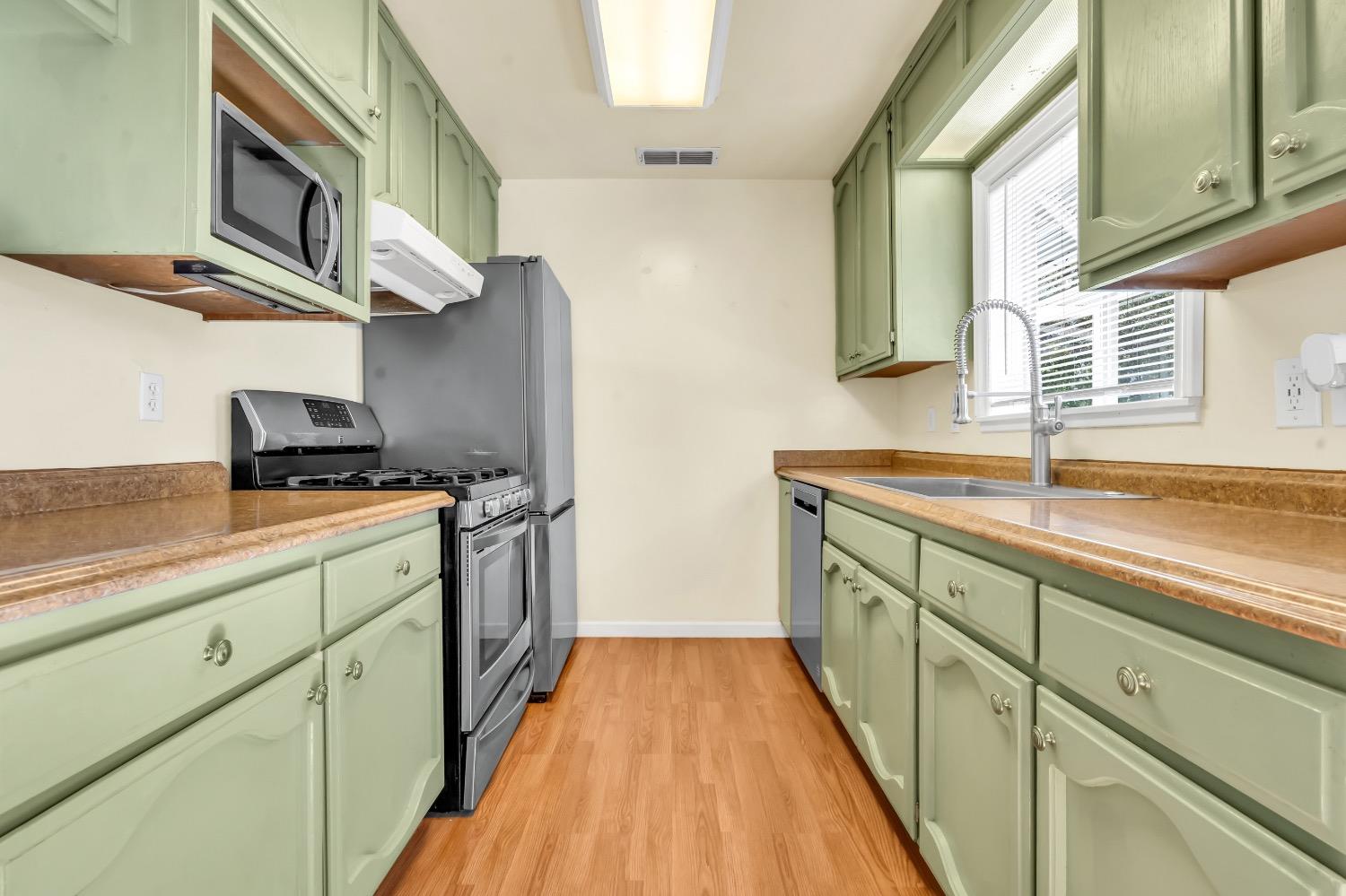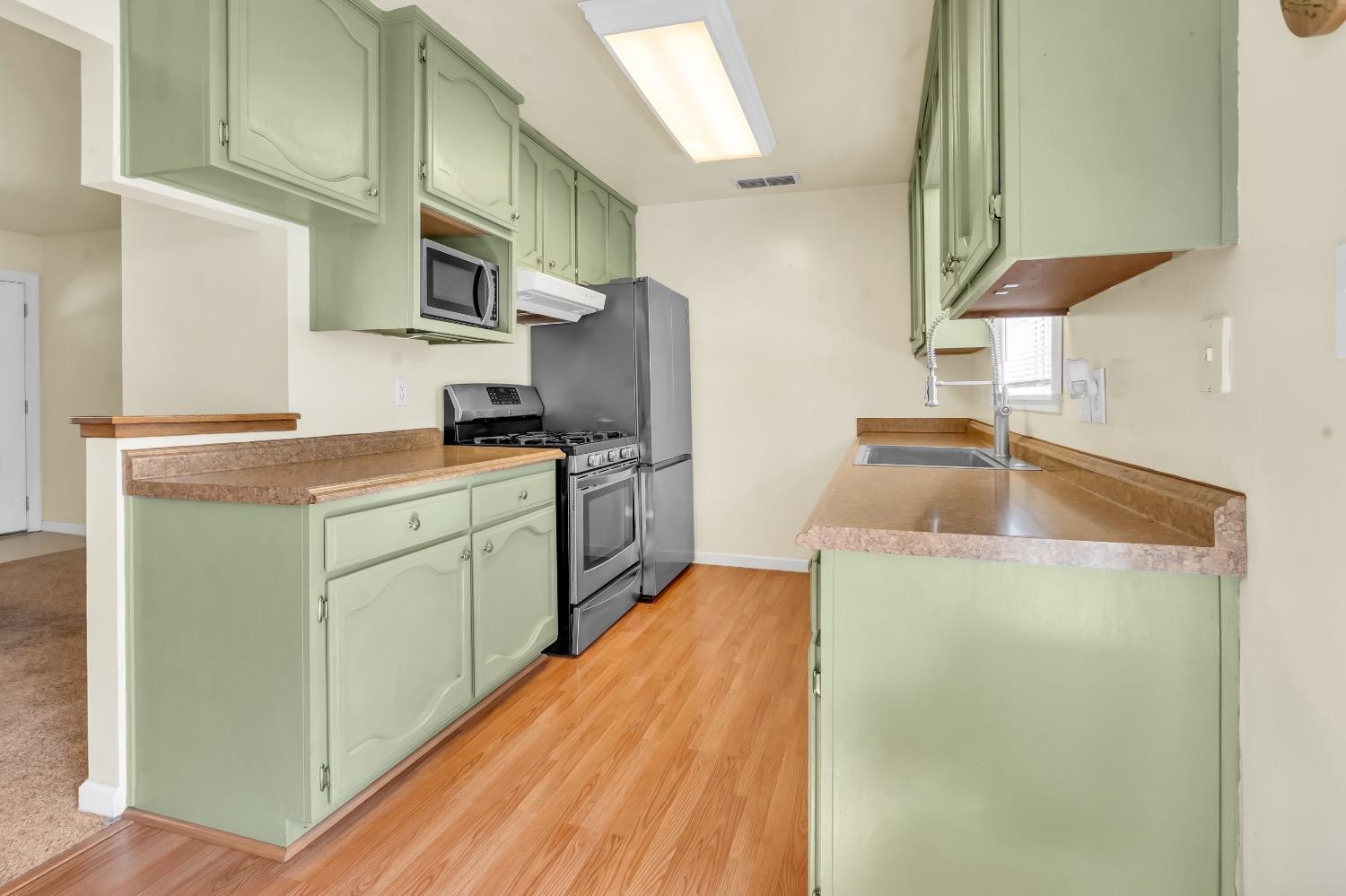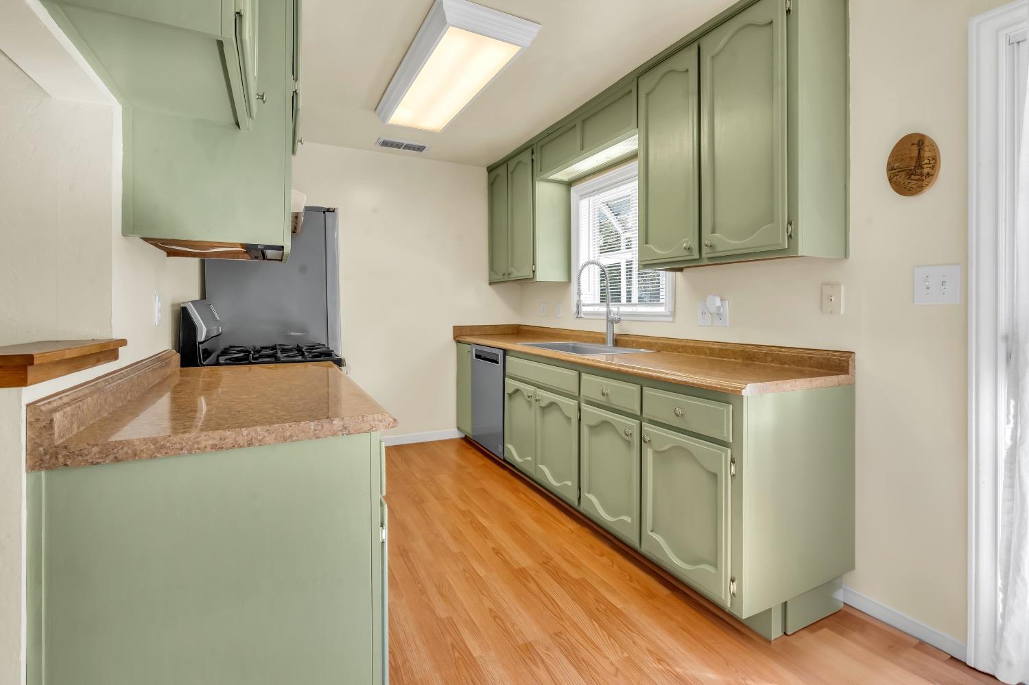 Welcome to 7404 Granite Avenue in sunny Orangevale, CA! This single-story home is situated on a HUGE 0.3-acre corner lot, offering tons of potential for your garden, RV parking, or to raise chickens. Do you have kids entering high school soon? Casa Roble High School is right across the street! The front porch spans the width of the house, allowing you to sit outside in the mornings to drink your coffee. Step inside to find a bright and airy living space with a breakfast nook right next to it. All 3 bedrooms are conveniently tucked away at the back of the house. The roof is new within the last 5 years. Best of all, there are no HOA fees or Mello Roos to worry about. This house is within minutes of Orangevale Community Park, grocery stores, walking trails, Folsom Lake, a disc golf course, and freeway access. Come see why people love living in Orangevale due to the spacious lot sizes!